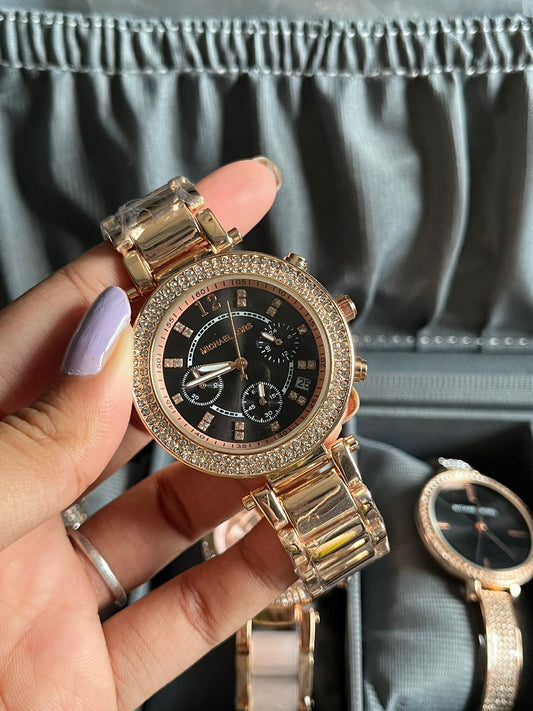 MK Parker Black Dial Rose Gold
